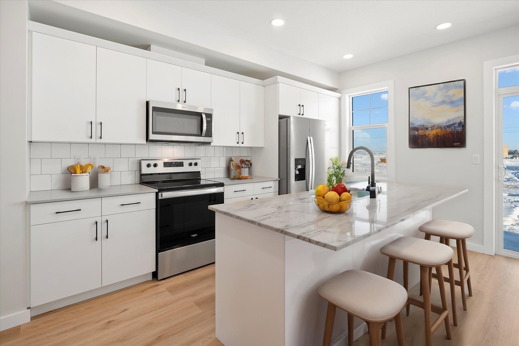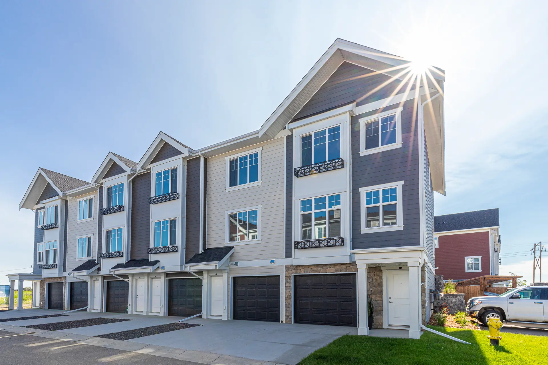 Harvest Townhome Rentals in Saskatoon is a thoughtfully planned multi-family development featuring three-storey townhomes designed for modern rental living. The homes are arranged in a mix of 6-plex and 7-plex buildings, each offering attached garages, private main-floor patios, and second-floor balconies connected to the living spaces to support indoor-outdoor lifestyles.