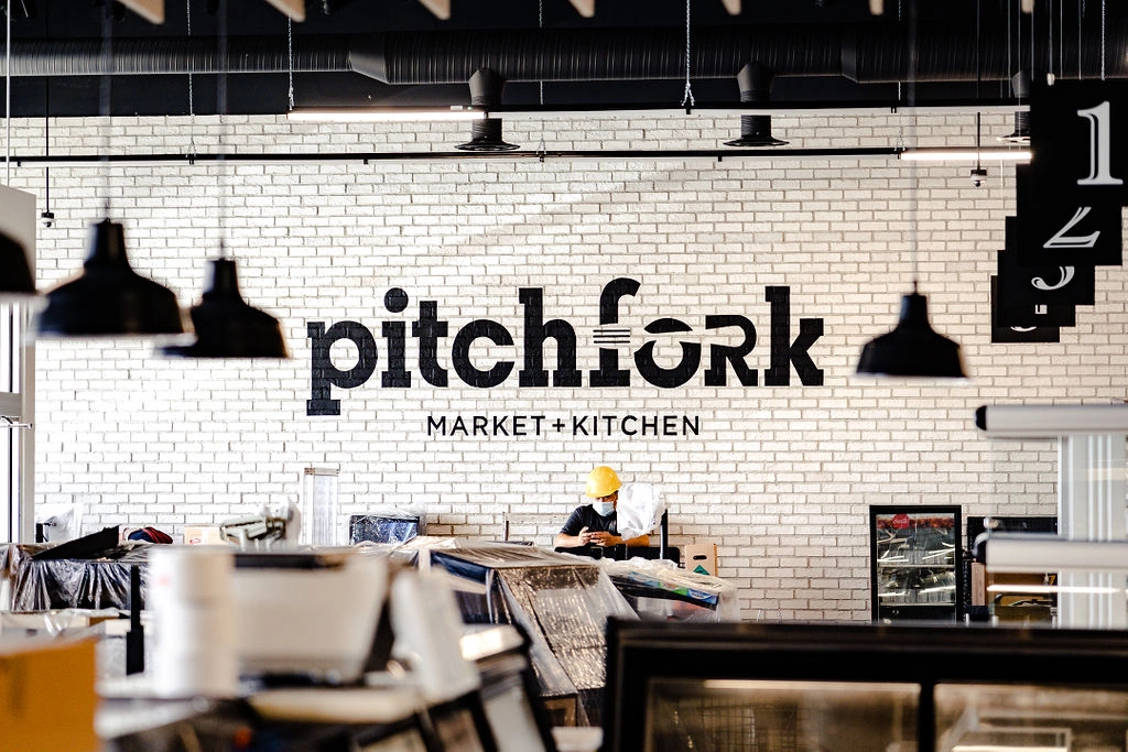 Pitchfork Market & Kitchen in Saskatoon is a dual grocery and restaurant build completed within an existing commercial retail unit (CRU).
